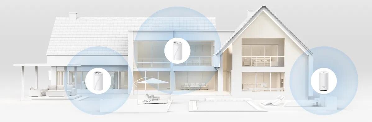 - Dosah WiFi: Širší pokrytí celé domácnosti, TP-Link Mesh technologie, volitelný Ethernet backhaul pro propojení jednotek Deco