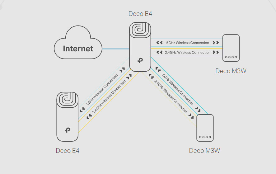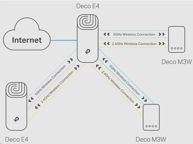 - TP-LINK Deco M4 pracuje v pásmu 2,4 GHz i 5 GHz
