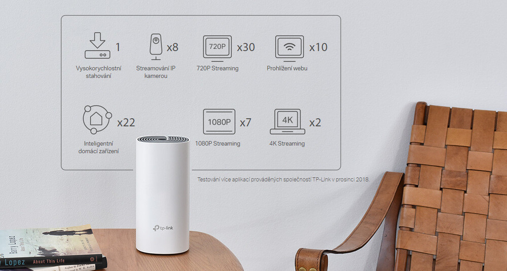 Díky podpoře technologie Wi-Fi 802.11ac je bezdrátové připojení s tímto modelem až třikrát rychlejší oproti routerům minulé generace. Deco zároveň dokáže poskytnout spolehlivé bezdrátové připojení až pro 100 zařízení najednou.