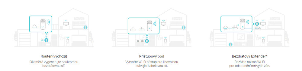 Deco E4 je multifunkční přístroj, neboť zvládá pracovat nejen jako router, ale i jako přístupový bod nebo prodlužovat signálu (extender). Stačí vybrat požadovaný režim a užívat si rychlého a stabilního připojení.