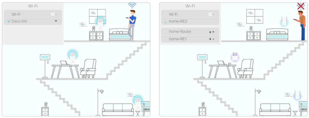 Deco M4 představuje jednoduchý a stylový způsob, jak si zajistit spolehlivou Wi-Fi v každém rohu vašeho domova. Spojení dvou jednotek, které jsou součástí balení, dohromady zajistí pokrytí prostoru o velikosti až 260 m2… A pokud potřebujete pokrytí ještě zvětšit, není nic jednoduššího, než připojit další přístroj s podporou technologie Mesh.