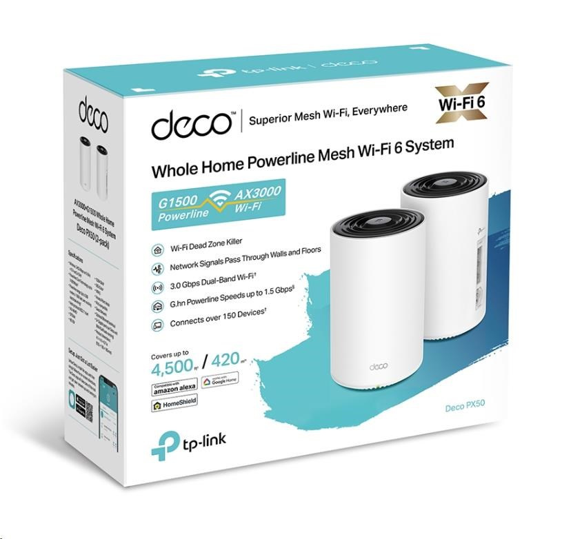 Ucelený systém, který k pokrytí celé domácnosti datovými službami využívá technologii Powerline (využívá elektrické vedení vašeho domova k vytvoření pevnějšího spojení mezi jednotkami Deco) a bezdrátového rozhraní WiFi 6.