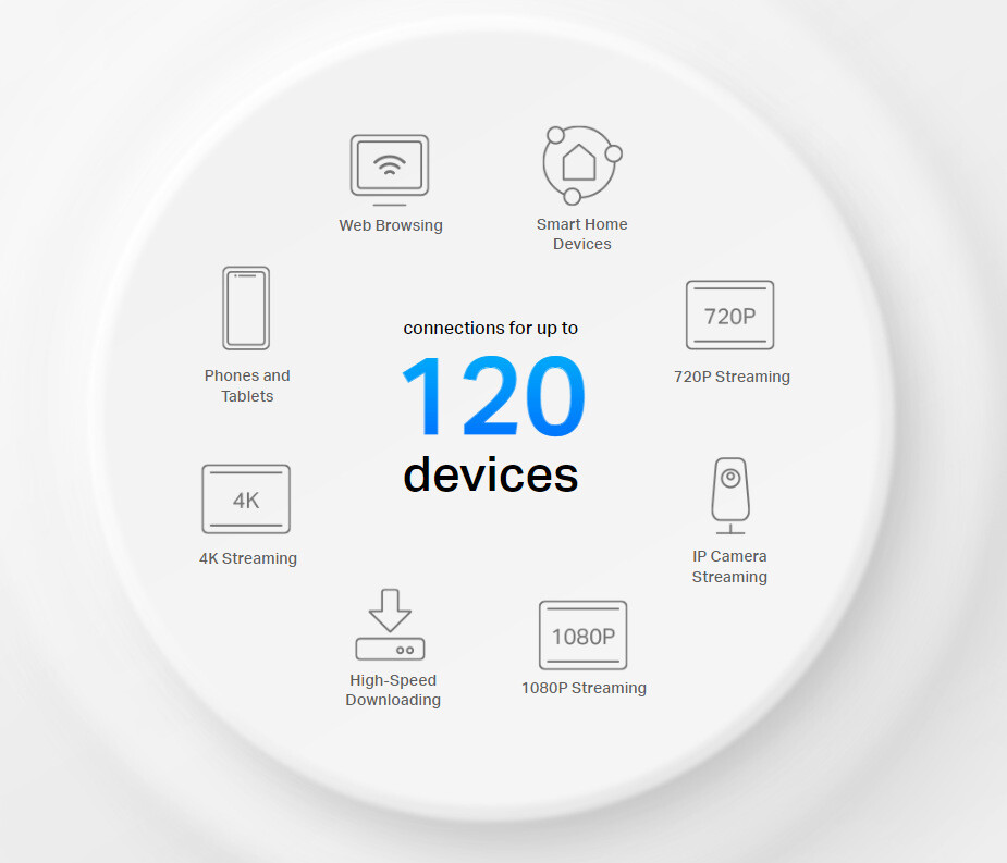 S využitím TP-Link Deco X10 dojde k dramatickému zvýšení kapacity a efektivity sítě. Důkazem budiž, že bez omezení rychlosti či stability sítě můžete snadno připojit až 120 zařízení.