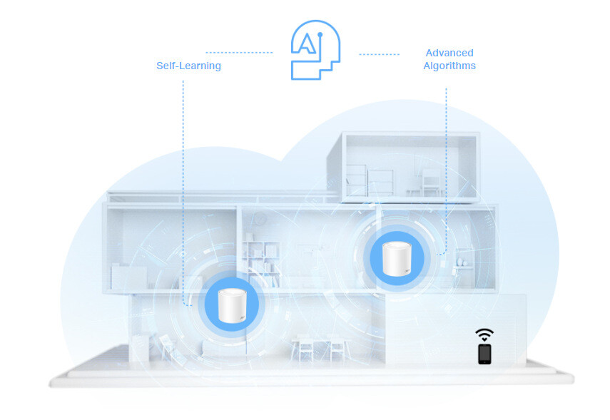 Prostřednictvím systému TP-Link Mesh jednotky Deco vytvářejí jednu unifikovanou síť. Vaše zařízení se tak automaticky připojuje vždy k té jednotce, která aktuálně nabídne nejlepší parametry připojení – například, když se pohybujete po domě či kanceláři, aby bylo zamezeno výpadkům sítě.