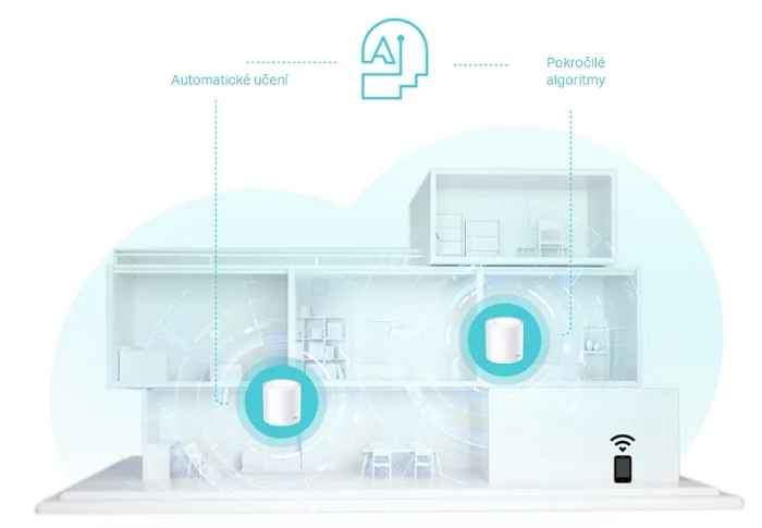 - Systém Mesh s umělou inteligencí – inteligentní analýza síťového prostředí zajistí ideální pokrytí Wi-Fi šité na míru vaší domácnosti