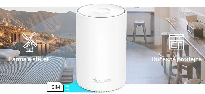 Tradiční širokopásmové nebo kabelové instalace na chatě, farmě či v předměstských lokalitách jsou nákladné a časově náročné. Situaci neusnadňují ani dlouhodobé smlouvy uzavírané s krátkodobými nájemci, organizátory akcí, stánkaři nebo dočasnými prodejnami, kteří všichni potřebují připojení k internetu. Deco X50-4G zajistí pohodlnou a dobře propustnou síťovou instalaci. Stačí vložit SIM kartu a začít využívat vysokorychlostní internetové připojení.