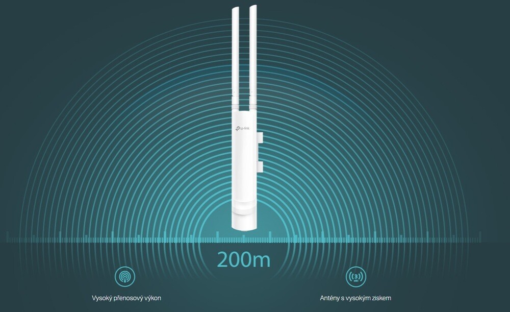 Vysoký přenosový výkon a 2 všesměrové antény s vysokým ziskem se postarají o stabilní pokrytí bezdrátovým signálem i ve venkovních podmínkách na vzdálenost přes 200 metrů. Vy tak získáte silné pokrytí, ať už jej bude rozvádět ze střechy budovy, nebo z druhého konce vašeho rozsáhlého pozemku.