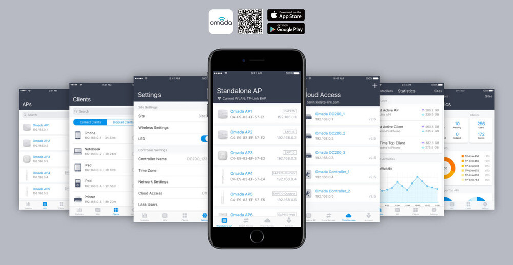 Přístupový bod během několika minut snadno nastavíte v bezplatné navigaci Omada. Ta umožní konfigurovat nastavení, sledovat stav sítě a spravovat klienty, to vše z pohodlí chytrého telefonu či tabletu. Díky cloudovému účtu je možné se na jednotlivé kontrolery připojit vzdáleně z webové nebo mobilní aplikace. Což ocení hlavně správci sítě pro okamžitý přehled situace a možnosti rychle reagovat bez nutnosti být na místě či zřizovat veřejné IP adresy, VPN apod.