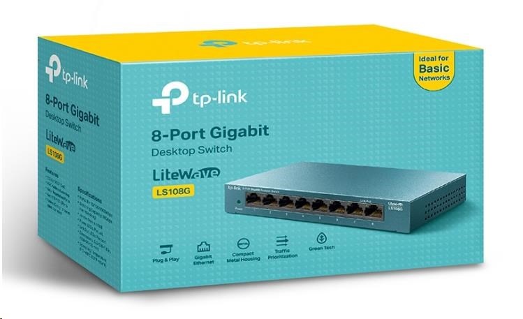 TP-Link LiteWave switch LS108G (8xGbE, fanless)Provedení:Desktop; Funkce:QoS (Quality of service); Technologie:Gigabit Ethernet 1000Mbps; Počet portů LAN:8; Počet portů LAN:8; Maximální počet portů:8; Přenosová rychlost LAN (Mb/s):1000; Maximální počet portů:8.