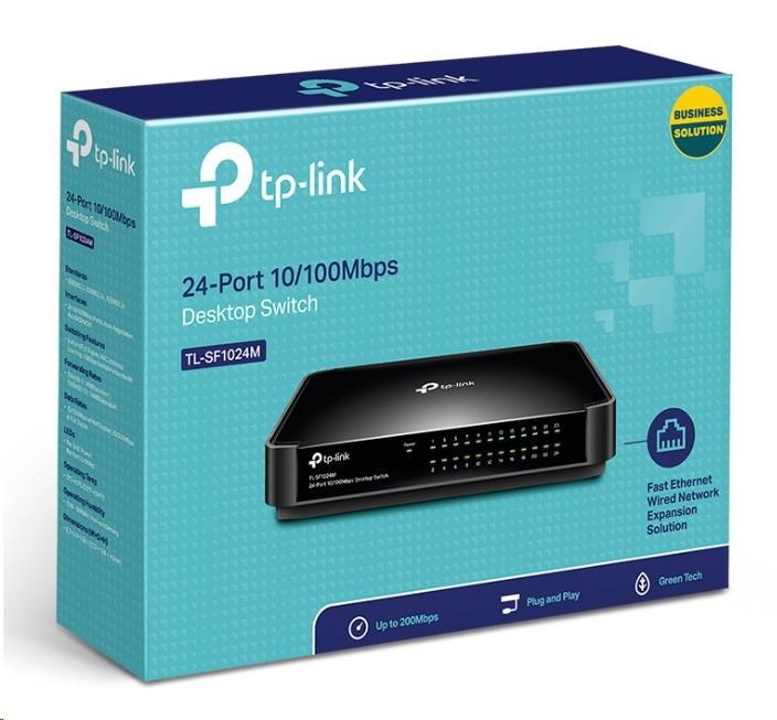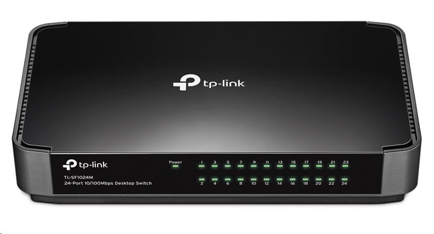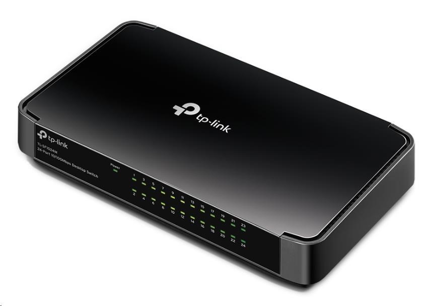 TP-Link switch TL-SF1024M (24x100Mb/s, fanless)Provedení:Desktop; Technologie:Fast Ethernet 10/100Mbps; Počet portů LAN:24; Přenosová rychlost LAN (Mb/s):100; Maximální počet portů:24.