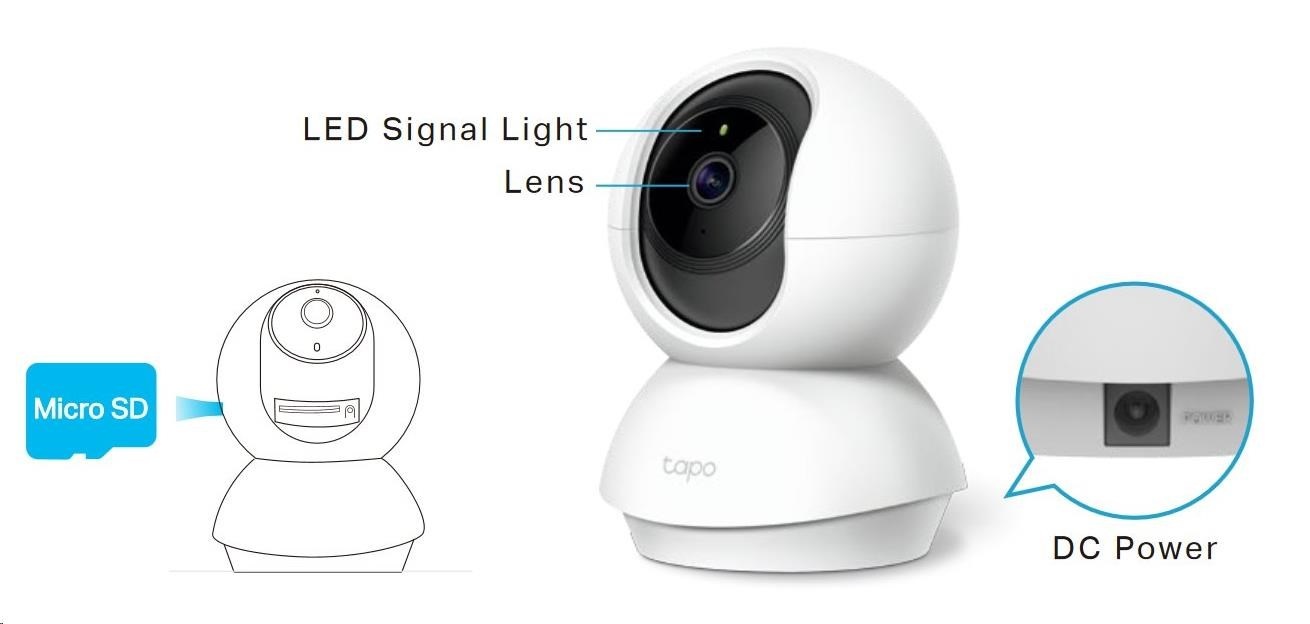 Nevelké nahrávací zařízení podporuje 2cestné audio (má mikrofon i reproduktor) a noční vidění. Můžete jej využít například i k hlídání vašeho dítěte. Kamera dále podporuje detekci pohybům obsahuje rovněž slot pro microSD kartu až 128 GB (není součástí balení). Z pokročilých funkcí má privacy mod, který fyzicky uzavře čočku kamery. Rozhraní: WiFi 802.11 b/g/n, 2,4 GHz, vstup pro napájení.