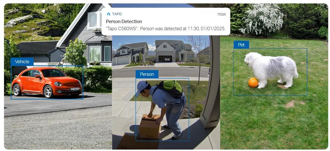 Venkovní IP kamera Tapo C560WS je ideální volbou pro každého, kdo chce mít neustálý přehled o svém pozemku, domě, vjezdu, garáži nebo zahradě. Díky 360° otáčení a inteligentní detekci osob, vozidel i domácích zvířat poskytuje spolehlivý dohled nejen u rodinných domů, ale i u chat, firemních objektů nebo skladů. Skvěle se hodí také k bránám, vstupním dveřím či pod přístřešky, kde pomůže identifikovat příchozí návštěvy nebo pohyb během dne i noci.