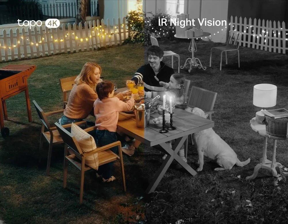Díky rozlišení 4K ultra HD (3840 × 2160 px) poskytuje IP kamera Tapo C560WS výrazně ostřejší a detailnější obraz než běžné kamery s Full HD. Zaznamená jemné detaily, jako jsou obličeje, poznávací značky nebo pohyb v dálce, což výrazně zvyšuje kvalitu zabezpečení. Ať už sledujete živý přenos nebo přehráváte záznam, můžete se spolehnout na maximální čistotu obrazu bez rozmazání.