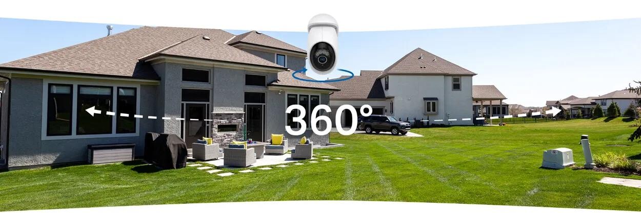 - Kamera s 360° horizontálním a 98° vertikálním otáčením sleduje prostor bez mrtvých úhlů