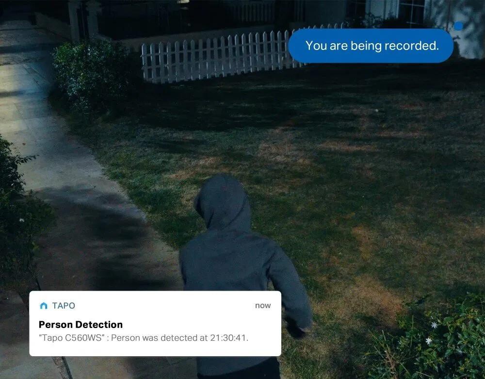 - IP kamera TP-Link Tapo C560WS má přizpůsobitelné alarmy pro aktivní odstrašení nezvaných návštěvníků