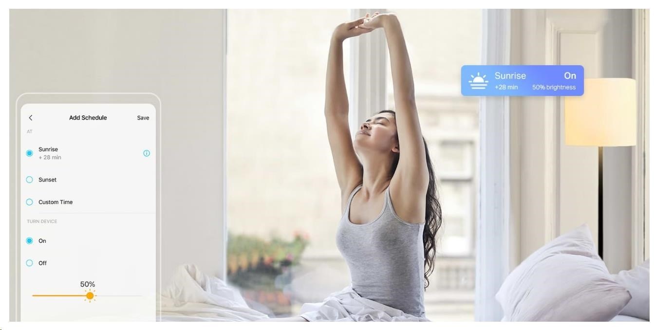 - Plán (režimy východu a západu slunce) – Automaticky aktivujte své světlo podle časového pásma