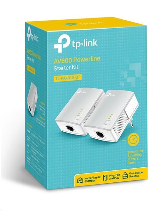 TP-LINK TL-PA4010 Nano Powerline Adapter Starter Kit je sada obsahující dva Powerline adaptéry TL-PA4010.Sada umožní vytvořit datové spojení v elektrických rozvodech rychlosti až 600Mbps s dosahem až 300 metrů. Každý adaptér TL-PA4010 je vybaven jedním LAN konektorem Fast Ethernet s podporou rychlostí 10/100Mbit. Rozměry adaptéru činí 65 × 52 × 28.5 mm.