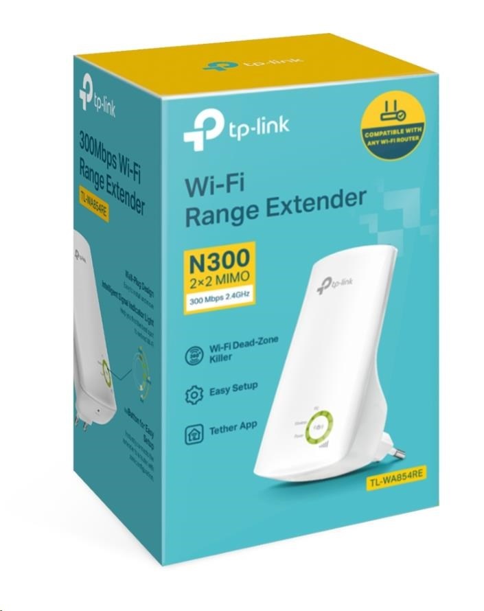 Opakovač bezdrátového signálu TP-LINK TL-WA854RE 300Mbps Universal WiFi Range Extender snadno rozšíří dosah Vaší bezdrátové sítě. Je navržen jako uživatelsky příjemné řešení, bez složitých nastavení, takže jeho instalaci zvládne opravdu každý. Díky LED indikaci síly signálu najdete snadno ideální umístění a pak stačí pouze stisknout tlačítko WiFi Protected Setup (WPS) na stávajícím routeru a tlačítko Range Extender na TL-WA854RE. Kromě jednoduché instalace nabízí TL-WA854RE také vysoké rychlosti až 300 Mbps díky podpoře standardu 802.11n.
