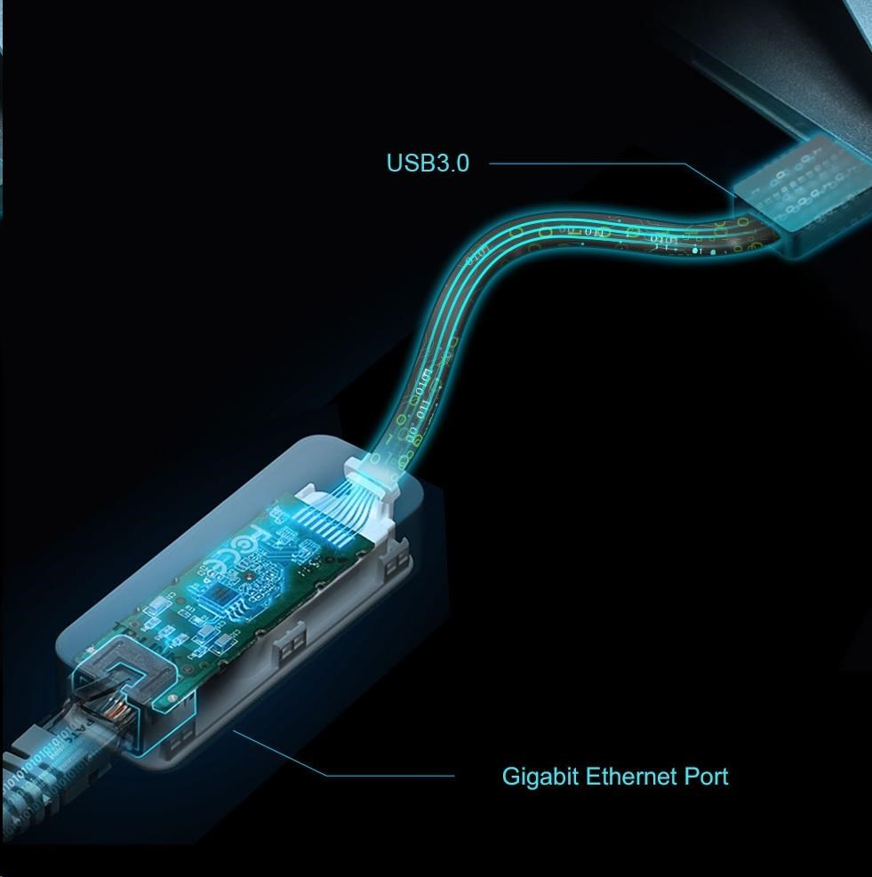 TP-Link UE306 USB/Ethernet síťový adaptér (1xUSB3.0 -> 1xGbE)Provedení:Externí; Typ antény:Odnímatelná; Rozhraní:USB; Přenosová technologie LAN:Ethernet 10/100/1000; Počet portů LAN:1; Přenosová rychlost LAN (Mb/s):1000.