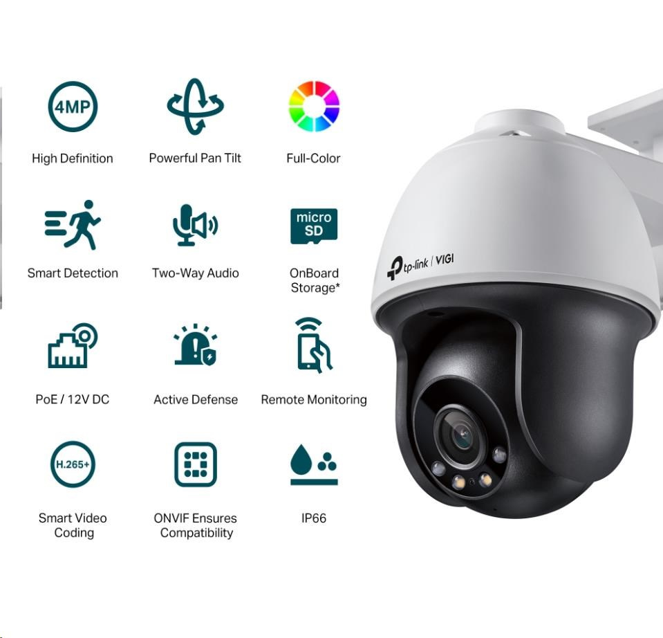 - Venkovní barevná síťová kamera VIGI 4 MPx Wi-Fi s funkcí otáčení a naklápění
