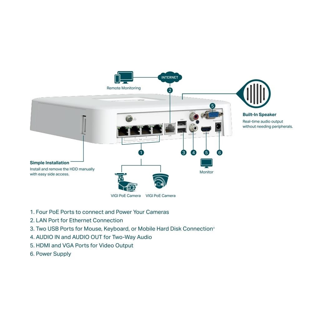 TP-Link VIGI NVR1104H-4P, videorekordér, 4 channels, 4xPoE, 1x100Mb/s LAN, 1xVGA,1xHDMI,2xUSB2.0