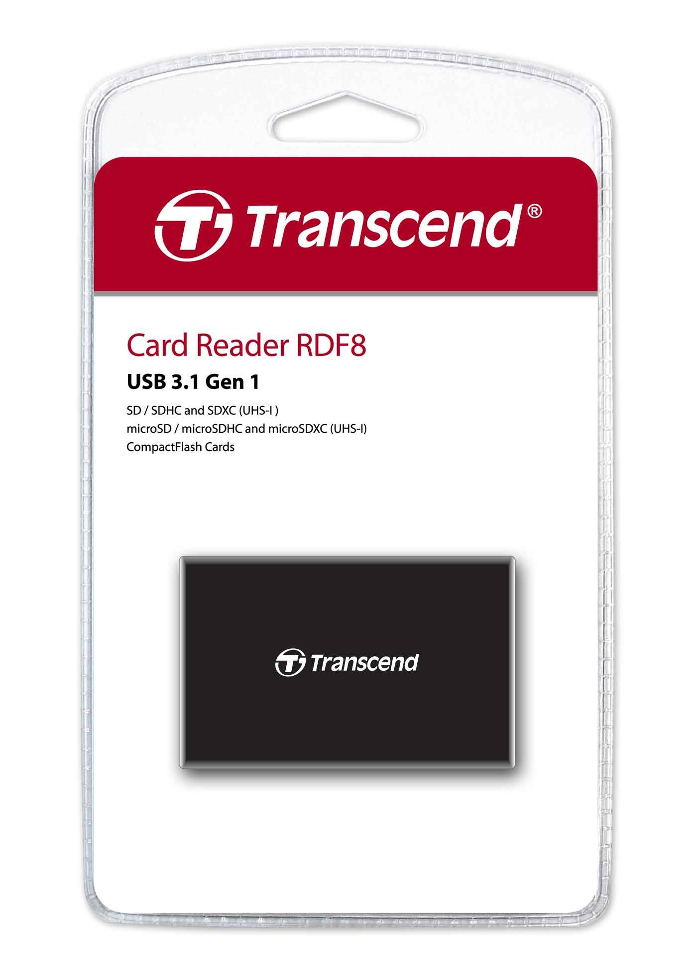TRANSCEND Card Reader F8 + USB kabel, USB 3.0, Black