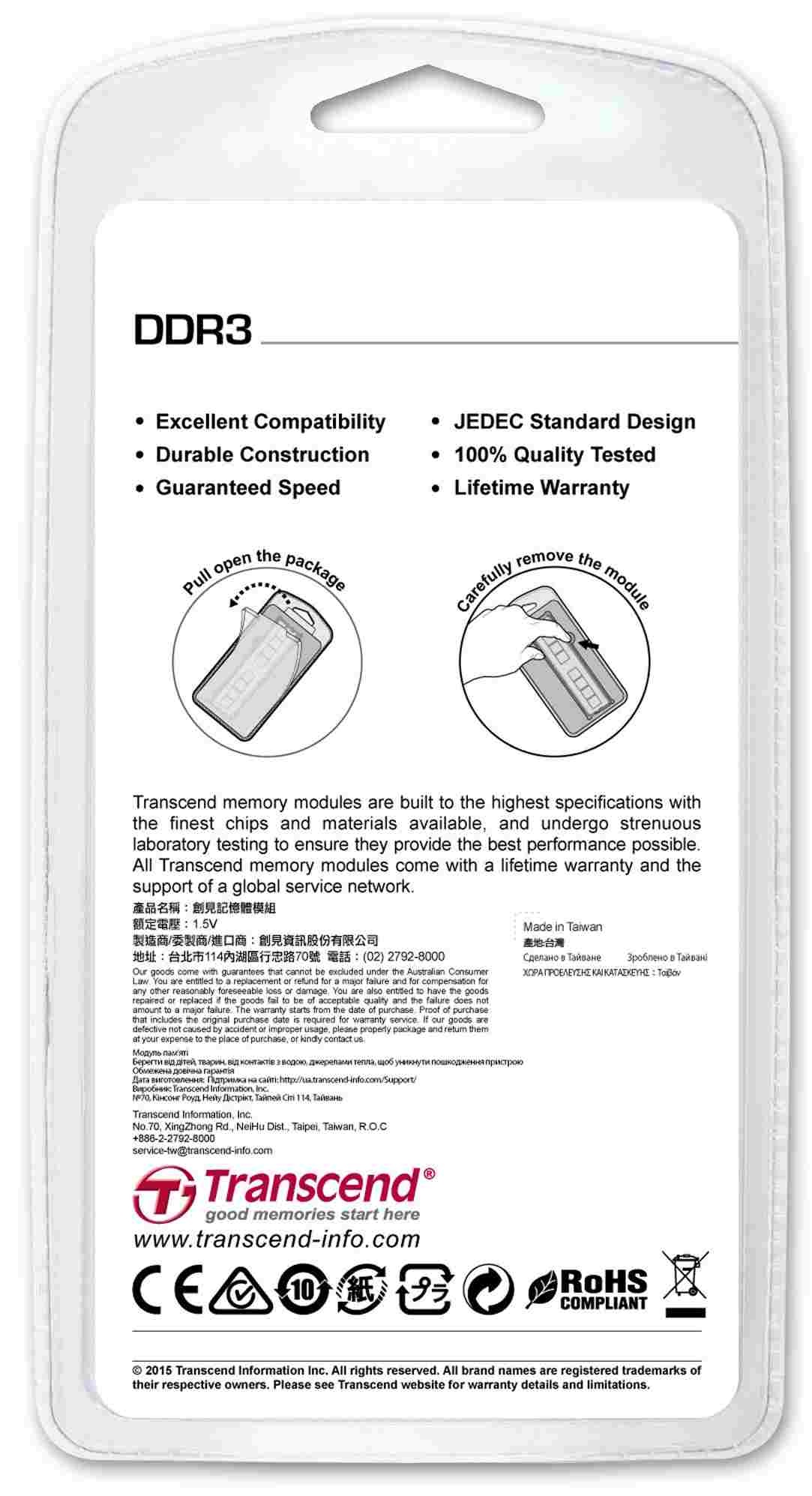 TRANSCEND DIMM DDR3 8GB 1600MHz 2Rx8 CL11