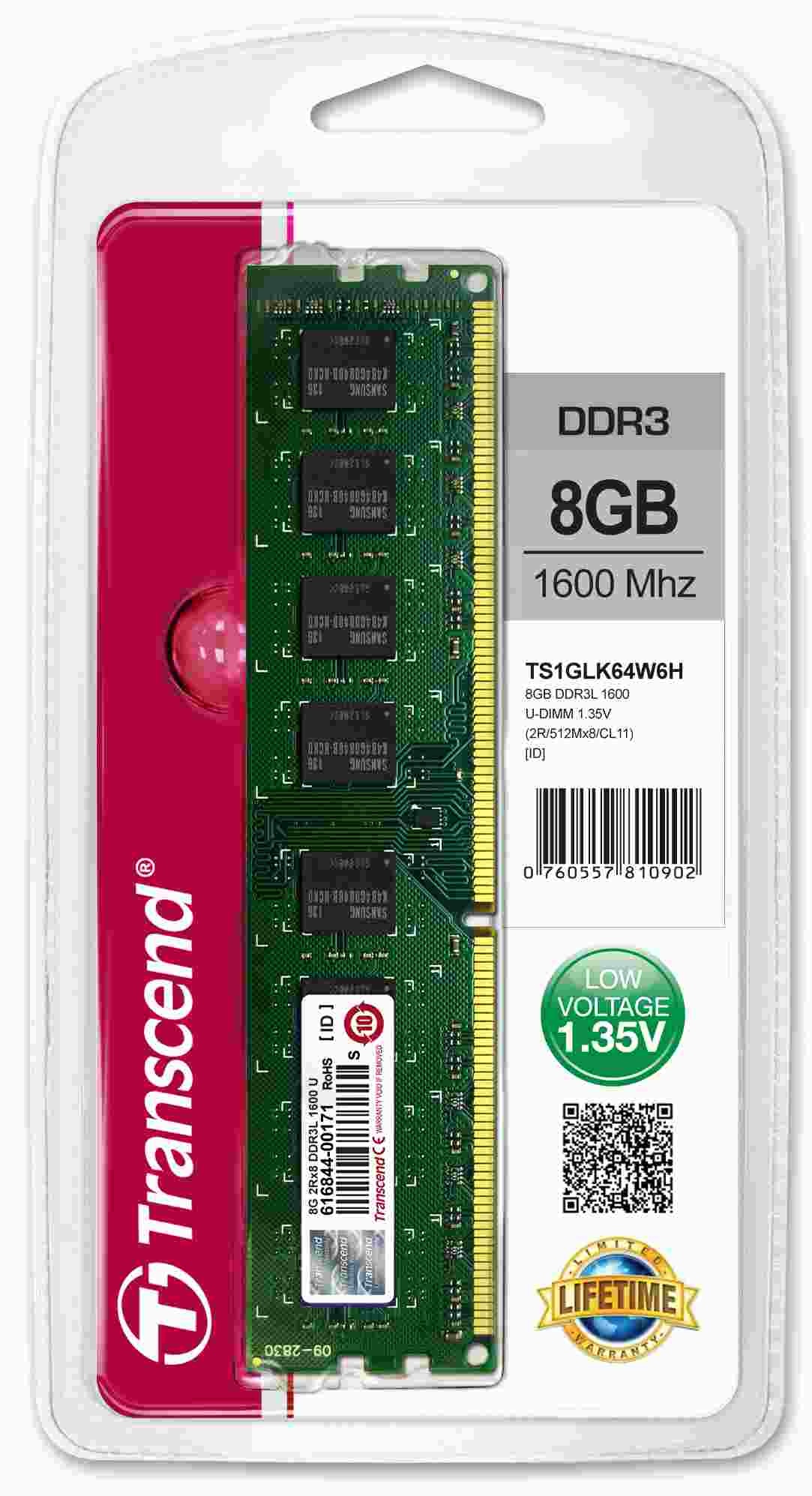 Built to exacting specifications with the finest chips and materials available, Transcend memory modules undergo strenuous laboratory testing to ensure the best performance possible. Transcend DDR3 Low Voltage DIMMs operate at a nominal voltage of just 1.35V, which not only produces less heat, but also reduces electrical load on the memory controller to offer power savings of up to 15% versus standard 1.5V.