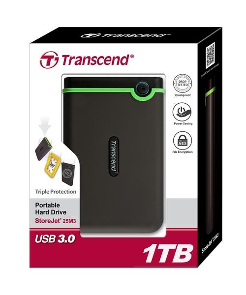 Kód: 325939Prodejní číslo: TS1TSJ25M3STRANSCEND externí HDD USB 3.0 StoreJet 25M3S, 1TB, Black (SATA, Rubber Case, Anti-Shock)
