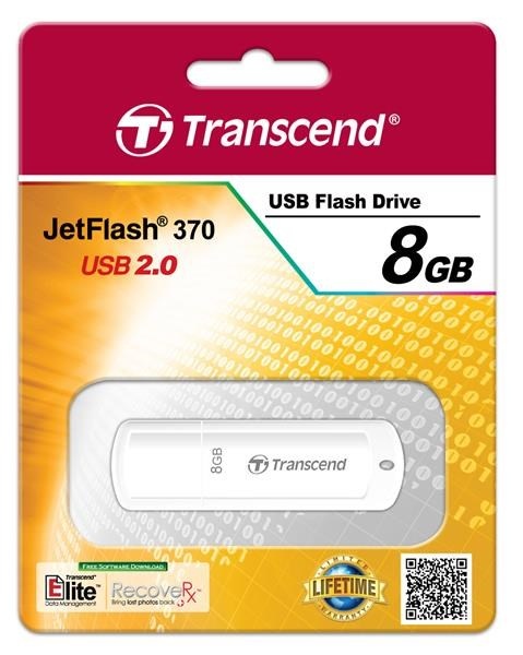 TRANSCEND Flash Disk 8GB JetFlash®370, USB 2.0 (R:13/W:4 MB/s) bíláKapacita uložiště:8 GB; Verze USB:2.0.