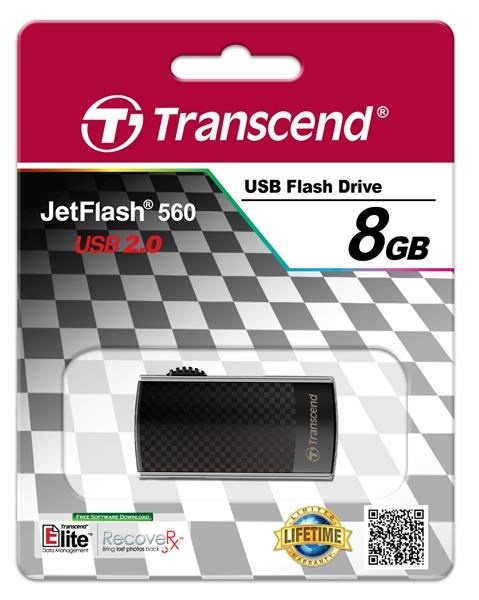 TRANSCEND Flash Disk 8GB JetFlash®560, USB 2.0 (R:18/W:4 MB/s) černá/stříbnáKapacita uložiště:8 GB; Verze USB:2.0.