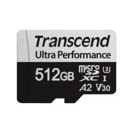 TRANSCEND MicroSDXC karta 512GB 340S, UHS-I U3 A2 Ultra Performace 160/125 MB/sTyp karty:Micro SDXC; Kapacita uložiště:512 GB; Rychlost čtení min. (MB/s):160; Rychlost zápisu min. (MB/s):120; Rychlostní kategorie:Class 10; UHS:UHS-I; Video Class:V30; Application Performance:A2; Adaptér; Typické použití:Nahrávání 4K videí.