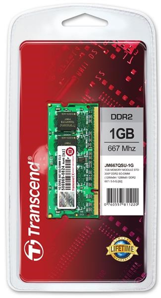 TRANSCEND SODIMM DDR2 1GB 667MHz 128Mx8 CL5 JetRam™