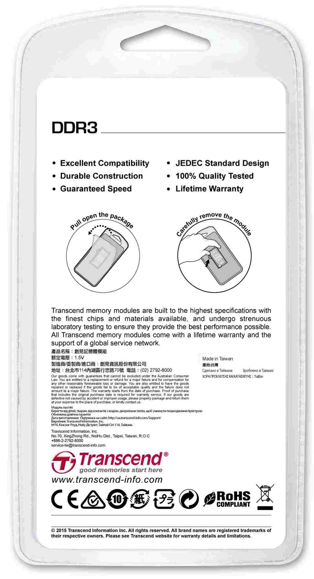 TRANSCEND SODIMM DDR3L 2GB 1600MHz 1Rx8 CL11