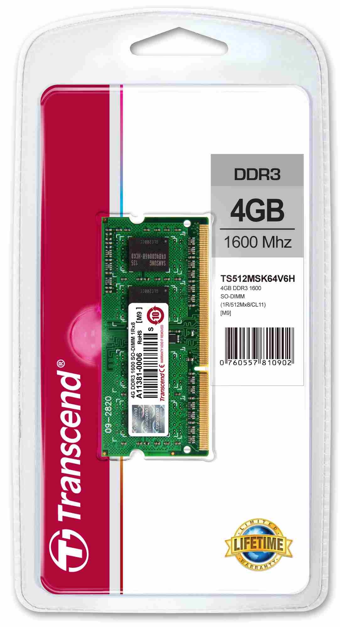 Kód: 325699Prodejní číslo: TS512MSK64V6HTRANSCEND SODIMM DDR3 4GB 1600MHz 1Rx8 CL11