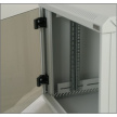 Rozvaděč Delta B je celosvařený nástěnný jednodílný rozvaděč s celoskleněnými dveřmi, které je možné díky masivním pantům otevřít pod úhlem téměř 180°. Důležitou součástí výrobku jsou otvory pro kabely, které jsou umístěny na horní a dolní stěně. Další dva otvory jsou umístěny na zadní stěně rozvaděče. Otvory jsou zaceleny vylamovacími záslepkami, které je možné vylomit s pomocí např. šroubováku. 19“ zařízení se instalují na vertikální lišty, které je možné plynule natavit podle potřeby do hloubky těla rozvaděče. Díky perforaci je zajištěna přirozená cirkulace vzduchu a chlazení komponentů. Přesné rozměry a další technické údaje jsou uvedeny níže (hodnoty R1 a R2 označují rozteče montážních otvorů pro zavěšení rozvaděče na zeď). Maximální zatížení rozvaděče je 30 kg. Rozměry: A – 500 mm B – 395 mm C – 490 mm D – 600 mm E – 395 mm R1 – 454 mm R2 – 420 mm Hmotnost – 17,4 kg Příbal: Klíč - přední dveře 2x Vrut 6x50 4x Podložka 6,6 4x Hmoždinka 10 4x Plastová podložka 8x Plovoucí matice M6 8x Šroub M6x16 8x Protiprachová záslepka 1x.