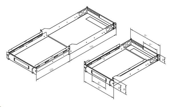 19“ Základnová stanice pro servery 3U, 750 mm, nosnost 45 kg