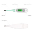 Rychlost měření za 5 vteřin, ohebná špička, 4 režimy měření, změna barvy displeje podle naměřené teploty, paměť na 10 měření, alarm při horečce..