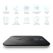 Osobní diagnostická bluetooth váha, měření pomocí bioelektrické impedanční analýzy, 19 měřitelných indexů těla, barevný LCD displej, až 8 uživatelů, párování váhy s mobilní aplikací pomocí bluetooth, kompatibilita s iOS a Android, synchronizace s aplikacemi Apple HealthKit, Google Fit, Fitbit, nosnost až 180 kg, maximální odchýlení 0,1 kg, materiál desky tvrzené ITO sklo, černá barva, napájení pomocí AAA baterií.