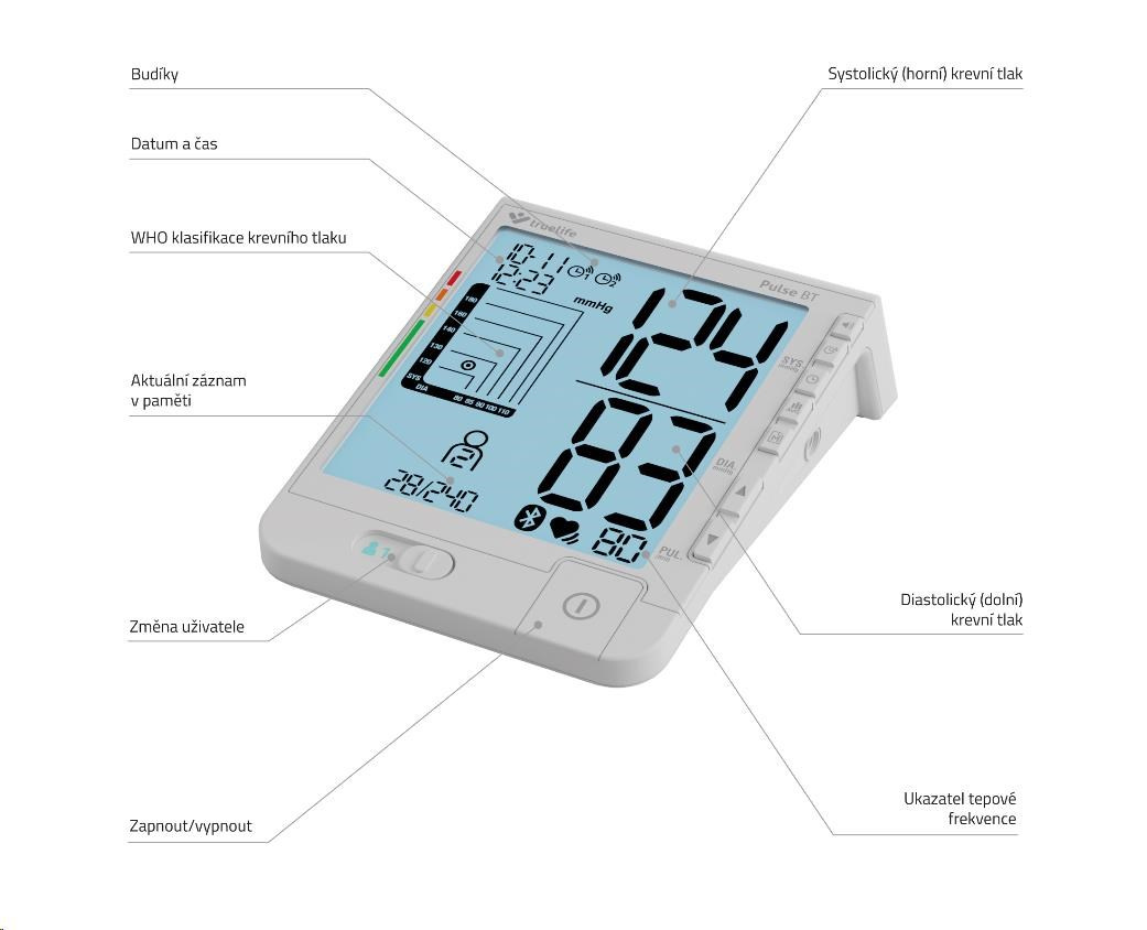 | Indikátor vysoké krevního tlaku | Ano – grafické a barevné znázornění |
