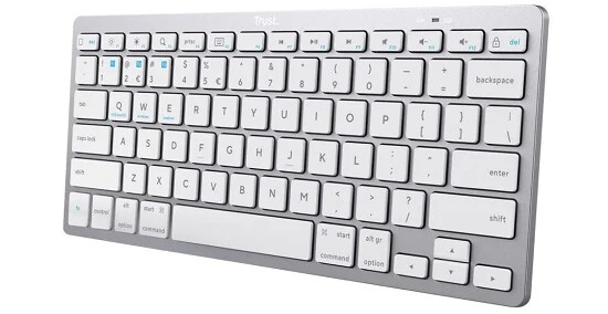 Tenká, bezdrátová, snadno spárovatelná až se třemi zařízeními. To je Bluetooth klávesnice Trust Basics, na které najdete QWERTY (US) klávesy. Ty jsou izolované nůžkového typu a mají skvělou odezvu.