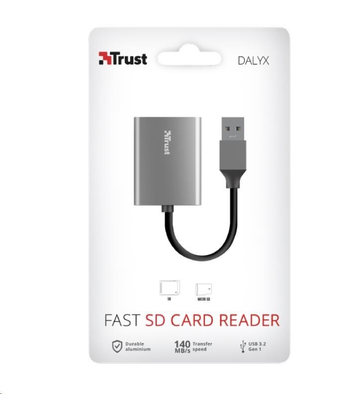 TRUST čtečka paměťových karet DALYX Fast, externí, USB 3.2, 8cmDruh IO zařízení:Čtečka paměťových karet - externí; Provedení:Externí.