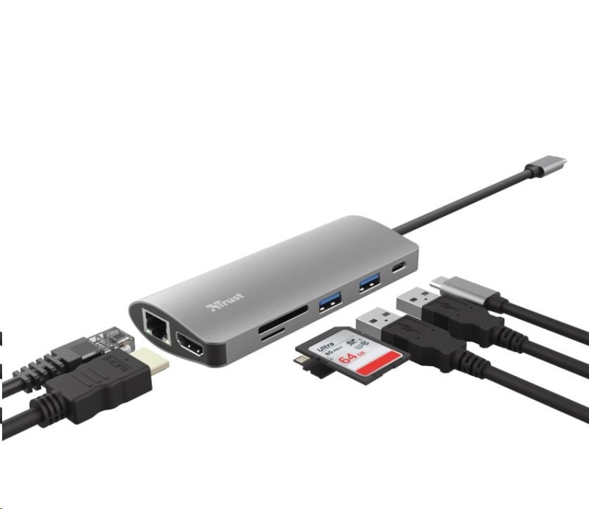 TRUST Dokovací stanIice DALYX USB-C 7v1, 1xHDMI, 1xUSB-C, 2xUSB, 1x RJ45, šedá