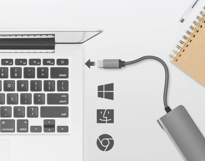 Velmi odolný kompaktní HUB 7v1 obsahuje Ethernet konektor a slot pro paměťovou kartu (SD, microSD), podporuje Power Delivery pro vysoké nabíjení (až 5 A / 100 W), nabízí rychlý přenos dat. Pomocí HDMI konektoru můžete snadno připojit 4K televizor.