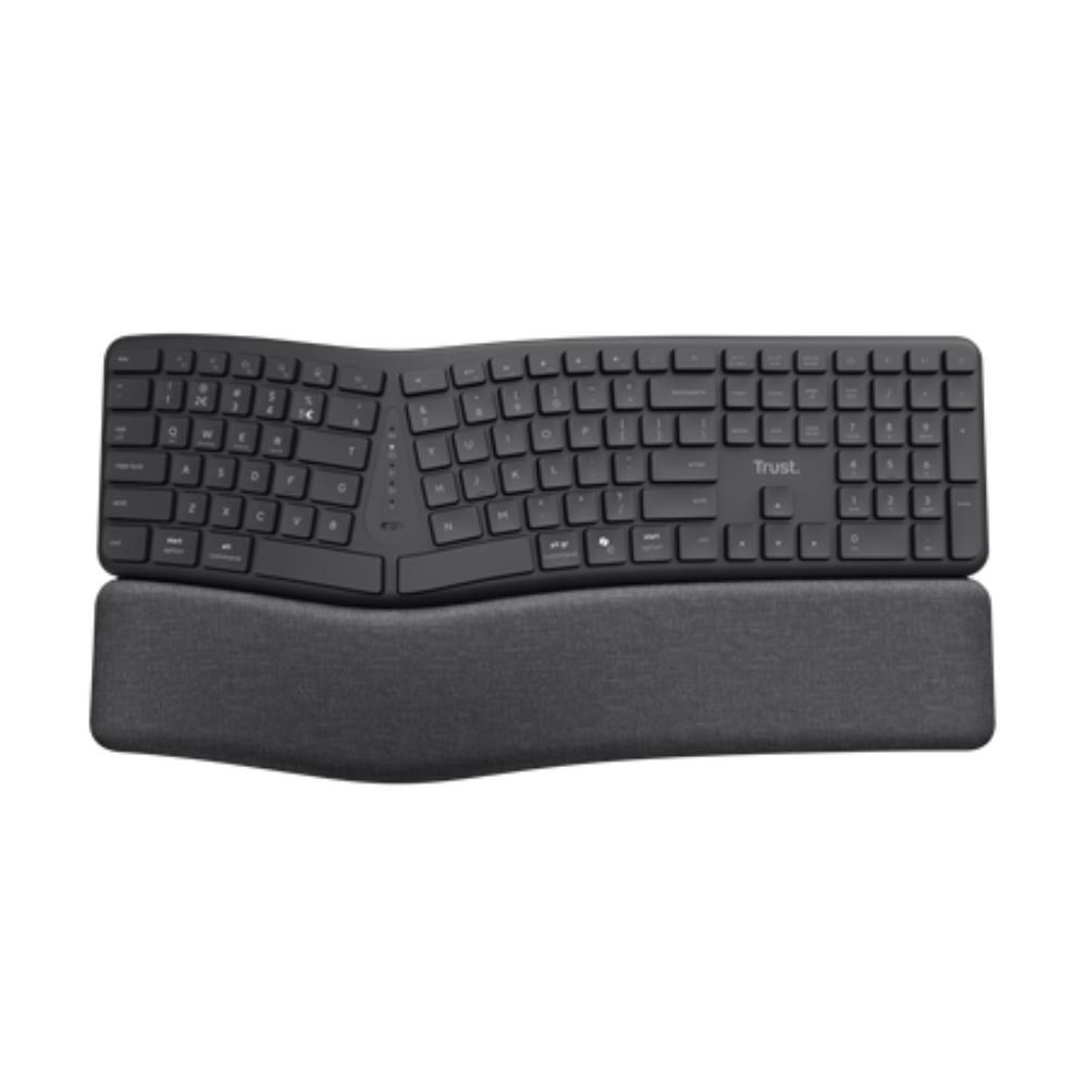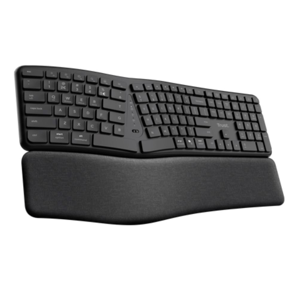 TRUST klávesnice Keyra, Ergonomická, Bezdrátová, US, černáTyp klávesnice:Membránová; Rozhraní klávesnice:Bezdrátová; Lokalizace klávesnice:EN; Výbava klávesnice:Multimediální klávesy.