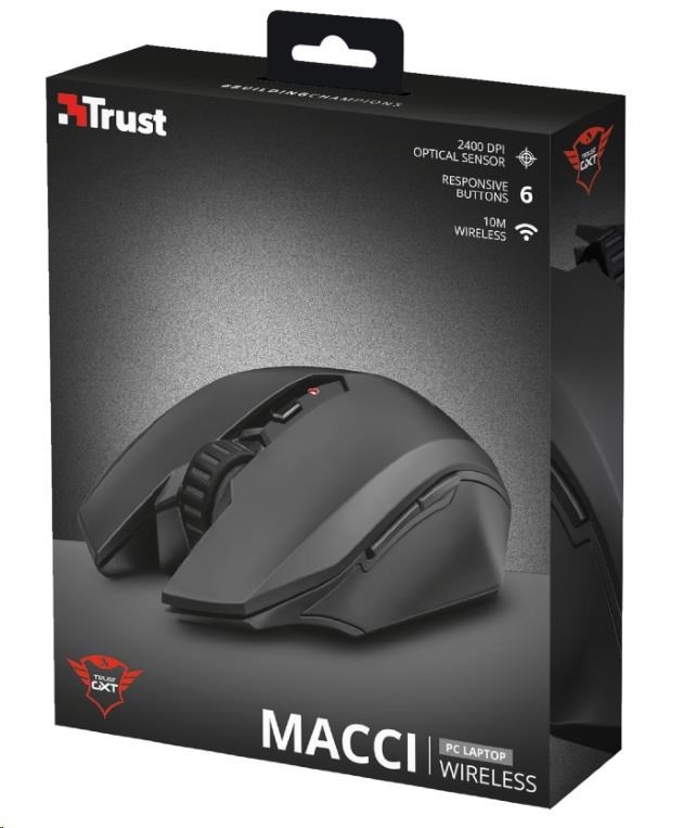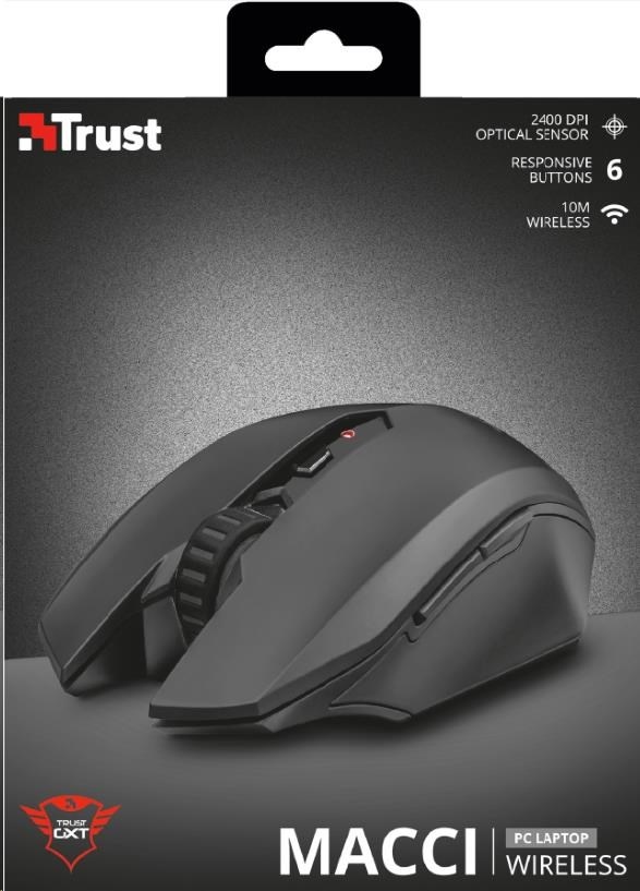 TRUST myš GXT 110 FELOX Gaming Wireless Mouse, optická, USB, černáRozhraní myši:Bezdrátová s USB dongle; Druh myši:Optická; Specifikace myši:4 a více tlačítek, S kolečkem.