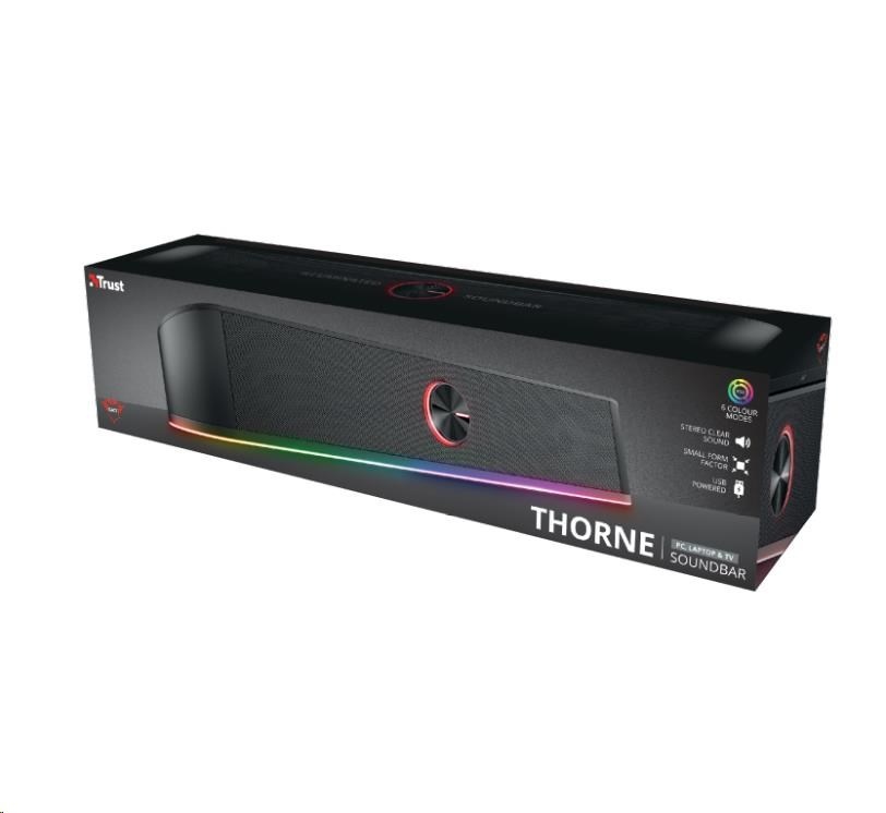 TRUST reproduktor GXT 619 Thorne RGB Illuminated SoundbarSpecifikace sestavy:1; Výkon sestavy RMS (ve W):6; Rozhraní:3.5mm jack.