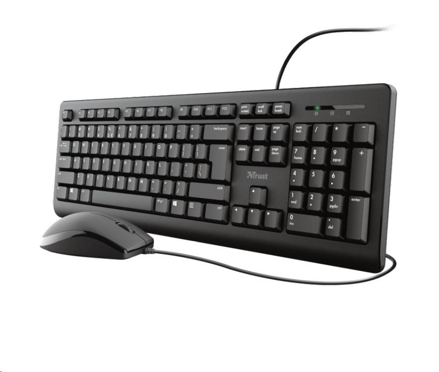 TRUST set klávesnice + myš PRIMO, USB, USRozhraní setu:Drátový USB; Lokalizace klávesnice:EN; Specifikace myši:3 tlačítková, S kolečkem.