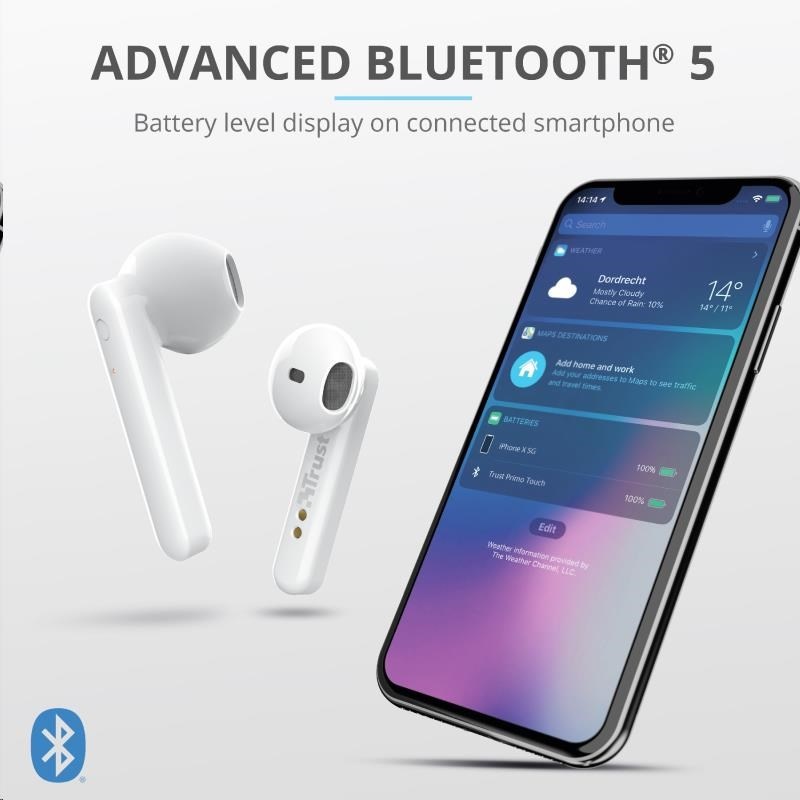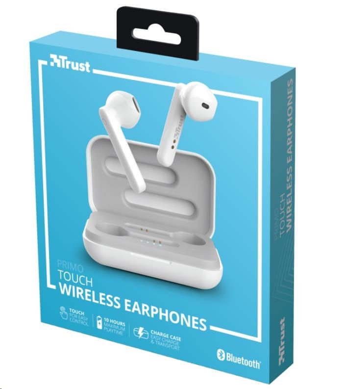TRUST sluchátka Primo Touch Bluetooth Wireless Earphones - whiteTyp sluchátek:Pecky; Rozhraní sluchátek:Bluetooth.