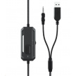 - Single 3.5mm plug for laptops; comes with a Y-splitter for PCs that require two separate connections